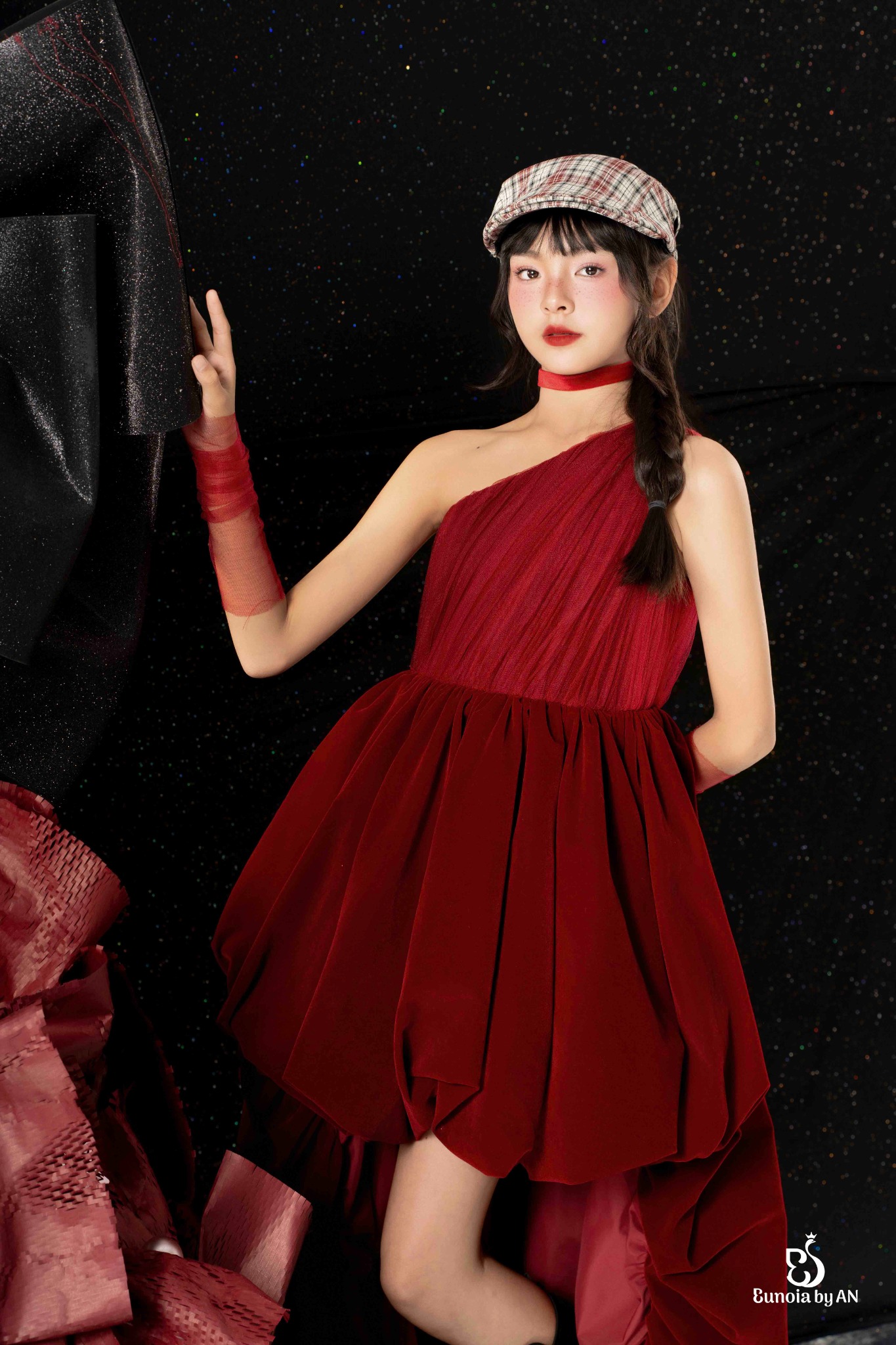 Một bé gái xinh xắn và thông minh, mang nét rạng rỡ của trí tuệ và tài năng sẽ mặc gì cho bữa tiệc cuối năm? Hẳn sẽ là Hồng Ty - một thiết kế váy dạ hội mang vẻ đẹp hài hòa giữa cá tính, tinh nghịch nhưng vẫn đầy nữ tính, dễ thương.