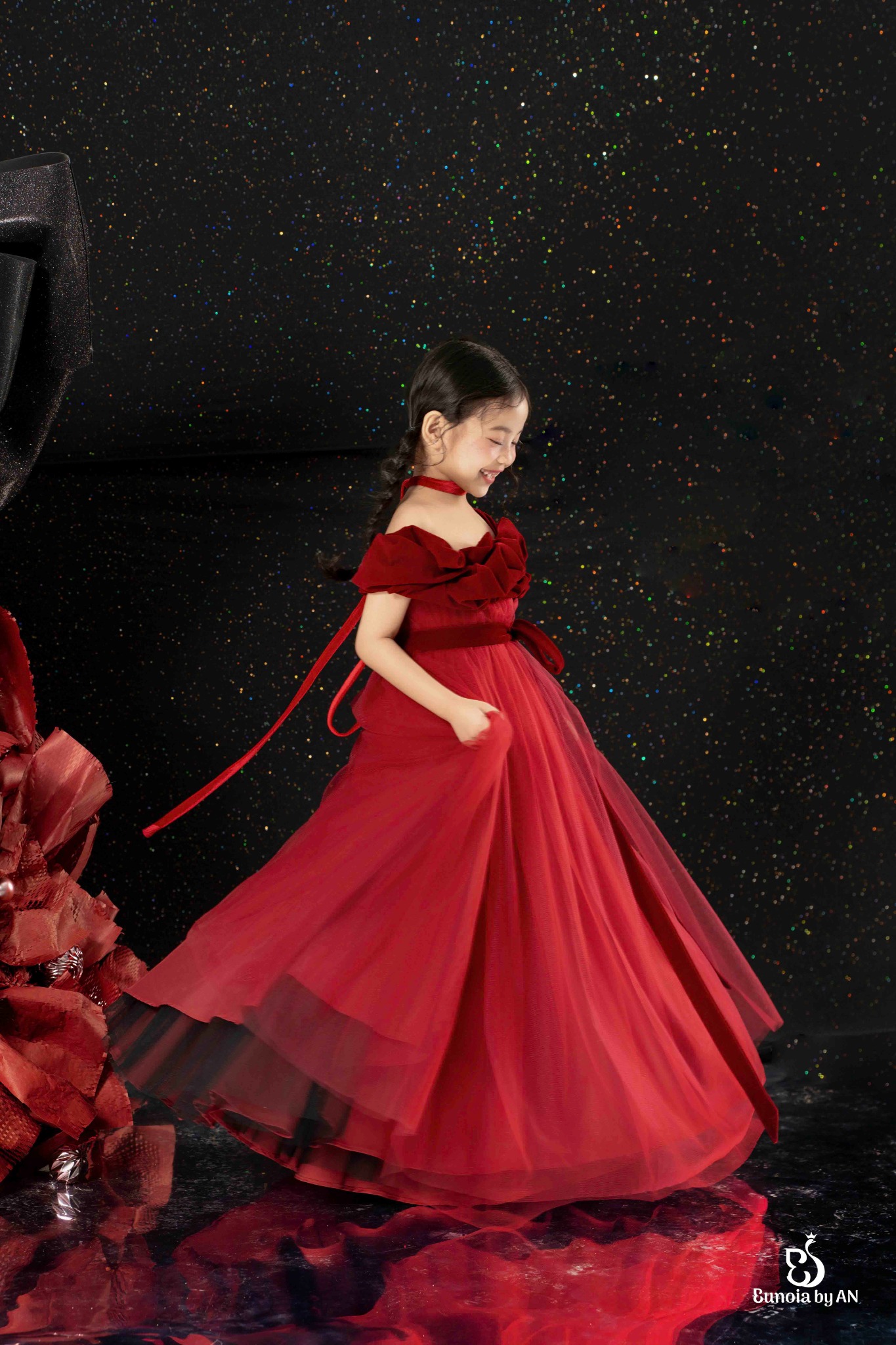 Như tia nắng đầu tiên mang sắc đỏ rực rỡ thắp sáng màn đêm, thiết kế Hồng Xuân của Eunoia được gửi gắm trọn vẹn những lời chúc ý nghĩa dành tặng con gái nhỏ. Ghé Eunoia, chọn váy dạ hội rực đỏ để gửi con gái yêu thêm nổi bật trong mùa lễ hội cuối năm nhé!