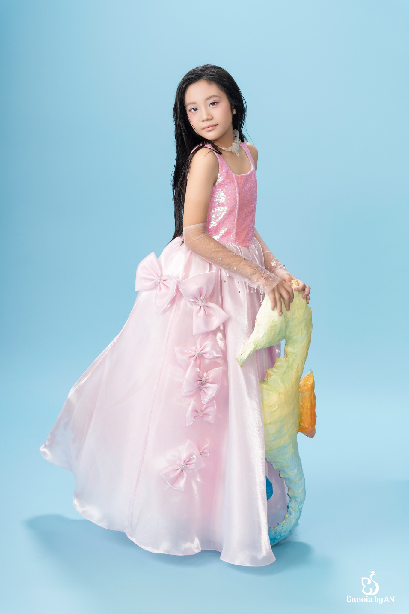 Chất liệu: Organza nước, Lụa satin, Sequin